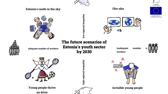 The study was born from the need to understand how young people in Estonia are affected by the above-mentioned challenges, as well as other important national and global developments, and how the youth sector and its related sectors (education, labour market and healthcare sectors) should adapt to these changes in order to be able to respond to young people's needs and support opportunities for their development. As a result, four alternative scenarios for the youth sector were created: "Estonia's castle in the sky", "Oho-aha", "Young people thrive on drive" and "Invisible young people".